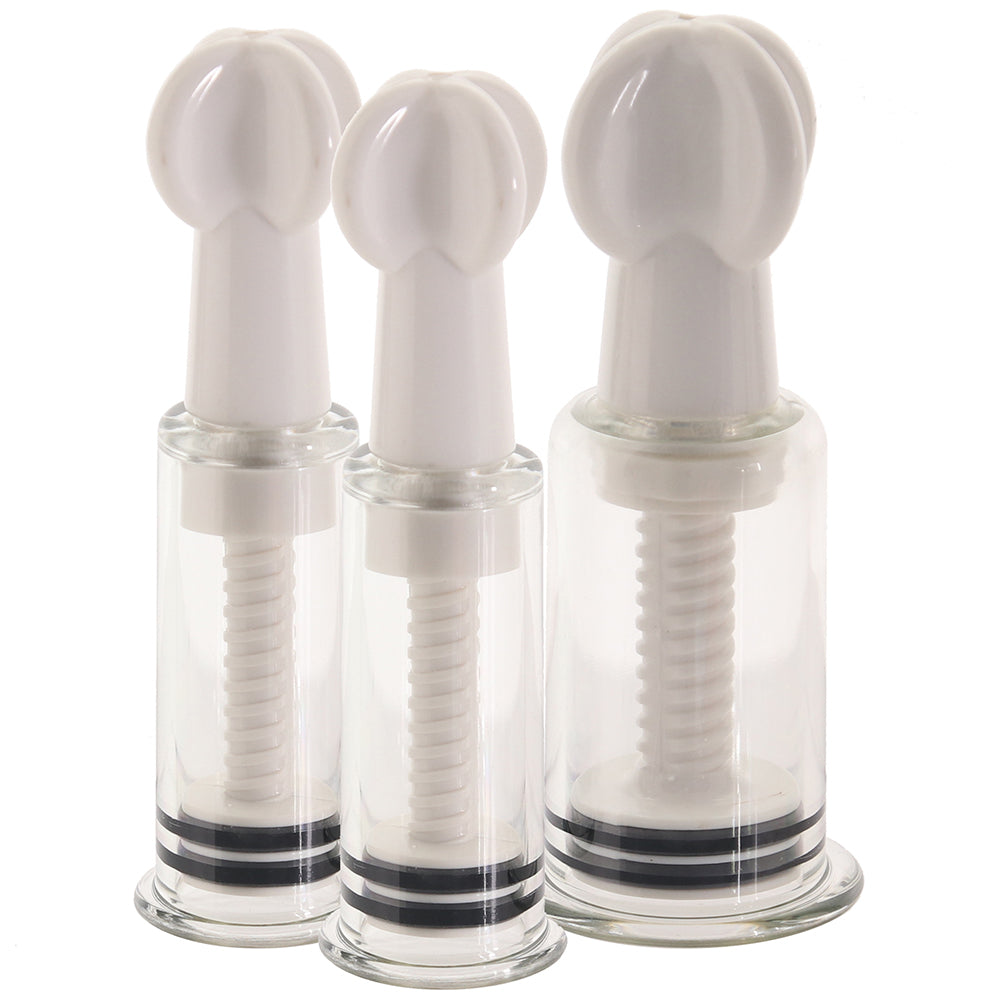 Love to have your nipples licked, flicked and sucked, but not necessarily… pinched? Need something to perk 'em up ahead of playtime? There's a tool (three actually!) for that - Size Up's Triple Sucker Set.